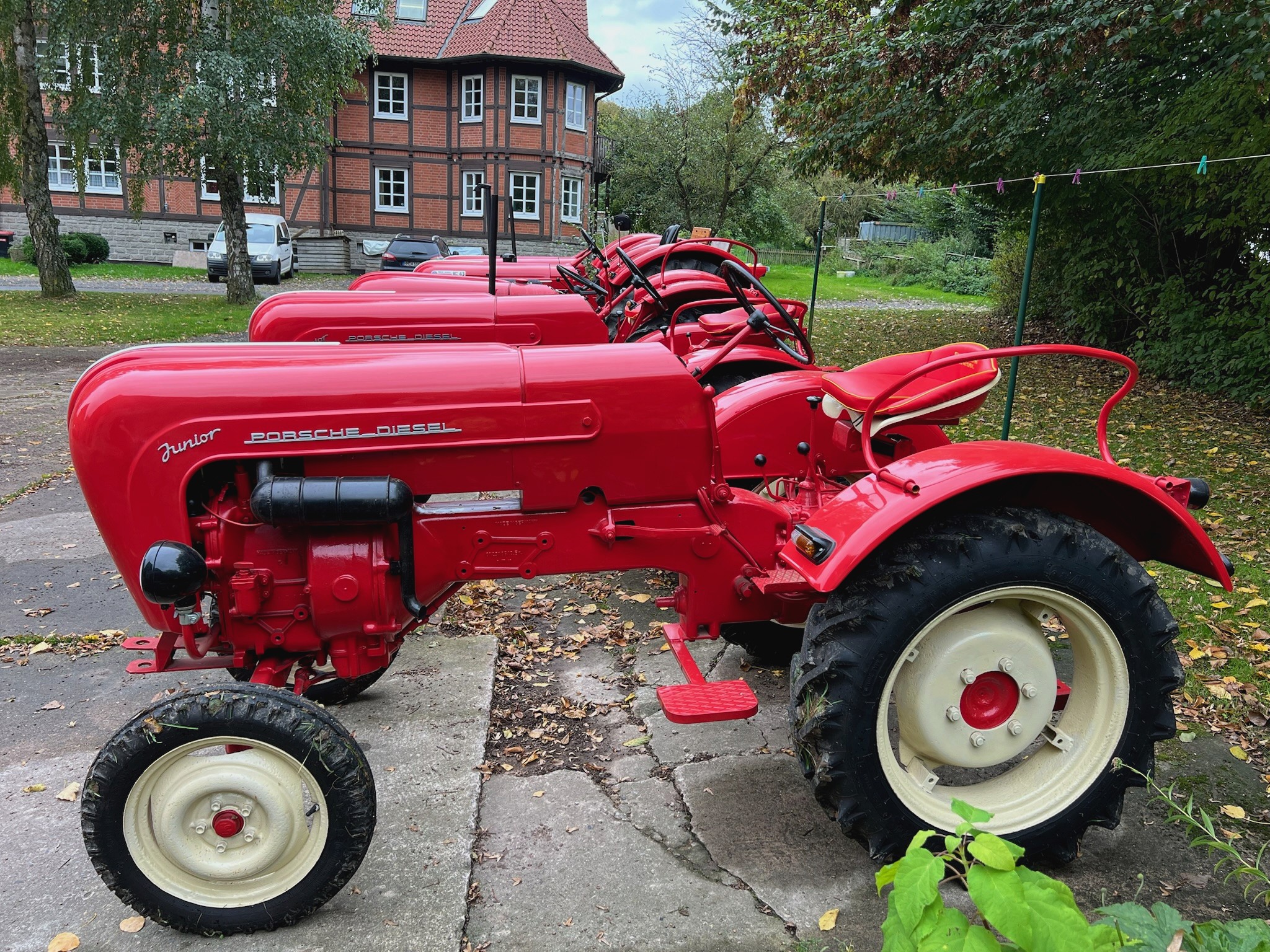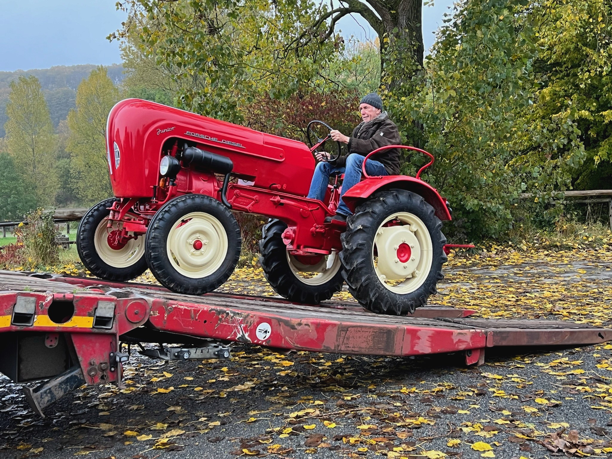 Der Porsche Junior 108, Baujahr 1959, war eines der ersten Modelle meiner Sammlung. Seine reduzierte, funktionale Bauweise und der ehrliche Antrieb haben mich von Anfang an begeistert. Mit seinem luftgekühlten Einzylinder-Dieselmotor und 10 kW Leistung bringt er alles mit, was man an Porsche-Traktoren schätzt – im kompakten Format. Der Traktor wurde im Rahmen der Sammlung sorgfältig instand gesetzt und regelmäßig bewegt. Er zeigt sich heute in einem sehr gepflegten technischen und optischen Zustand, bereit für neue Aufgaben – ob für Fahrten, für Sammler oder als zuverlässiger Klassiker auf dem Hof. Der Beifahrersitz ist funktional und macht das Erlebnis teilbar – wie es früher oft der Fall war. Er ist TÜV-abgenommen, voll straßenzugelassen und verfügt über ein aktuelles Wertgutachten, das seine Qualität und den erhaltenen Zustand bestätigt. Ich bin kein Händler, sondern ehemaliger Landwirt – dieser Traktor wurde nicht ausgestellt, sondern geschätzt. Er ist kein lauter Auftritt, aber ein starkes Stück Technik, das sich sehen und hören lassen kann. Technische Daten: – Baujahr: 1959 – Motor: luftgekühlter Einzylinder-Dieselmotor – Leistung: 10 kW – Beifahrersitz – TÜV & Straßenzulassung vorhanden – Wertgutachten vorhanden Verfügbarkeit: Einzeln zu erwerben oder als Teil meiner Porsche-Traktorensammlung. Besichtigung nach Absprache. Lieferung möglich.