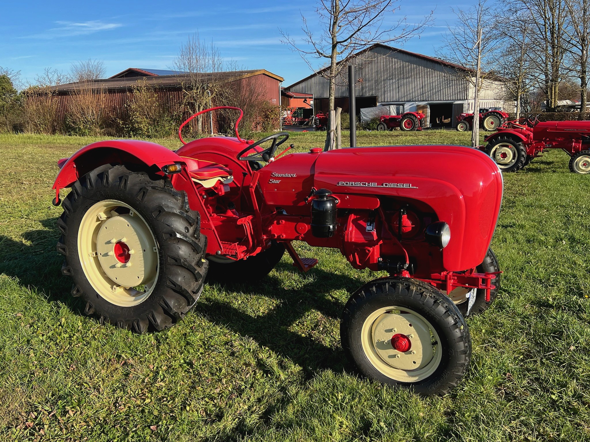 Der Porsche Standard Star 238 aus dem Jahr 1962 überzeugt durch klare Linien, robuste Technik und eine zeitlose Ausstrahlung. Er ist kein Traktor, der laut auf sich aufmerksam macht – aber sobald er startet, weiß man: Hier steckt Substanz drin. Und Erfahrung. Ein ehrliches, kraftvolles Fahrzeug mit Charakter. Ausgestattet mit einem luftgekühlten Zweizylinder-Dieselmotor mit 19 kW, Hydrauliksystem, Zapfwelle und Beifahrersitz, bringt er alles mit, was einen zuverlässigen Klassiker ausmacht. Er wurde vollständig professionell restauriert, sowohl technisch als auch optisch. Die Haube wurde aufgearbeitet, das Fahrzeug fachgerecht neu lackiert, und er präsentiert sich heute in einem glänzenden, stimmigen Gesamtbild. Der Traktor ist TÜV-geprüft, straßenzugelassen und mit einem aktuellen Wertgutachten versehen, das seinen Zustand und seine Originalität belegt. Ich selbst komme aus der Landwirtschaft – dieser Traktor wurde in meiner Sammlung nicht ausgestellt, sondern gepflegt: bewegt, gewartet, geliebt. Und jetzt ist er bereit, weiterzugehen. Technische Daten: – Baujahr: 1962 – Motor: luftgekühlter Zweizylinder-Dieselmotor – Leistung: 19 kW – Hydrauliksystem – Zapfwelle – Beifahrersitz – TÜV & Straßenzulassung vorhanden – Wertgutachten vorhanden Verfügbarkeit: Dieser Traktor kann einzeln oder als Teil meiner Porsche-Traktorensammlung erworben werden. Besichtigung nach Absprache. Lieferung möglich.